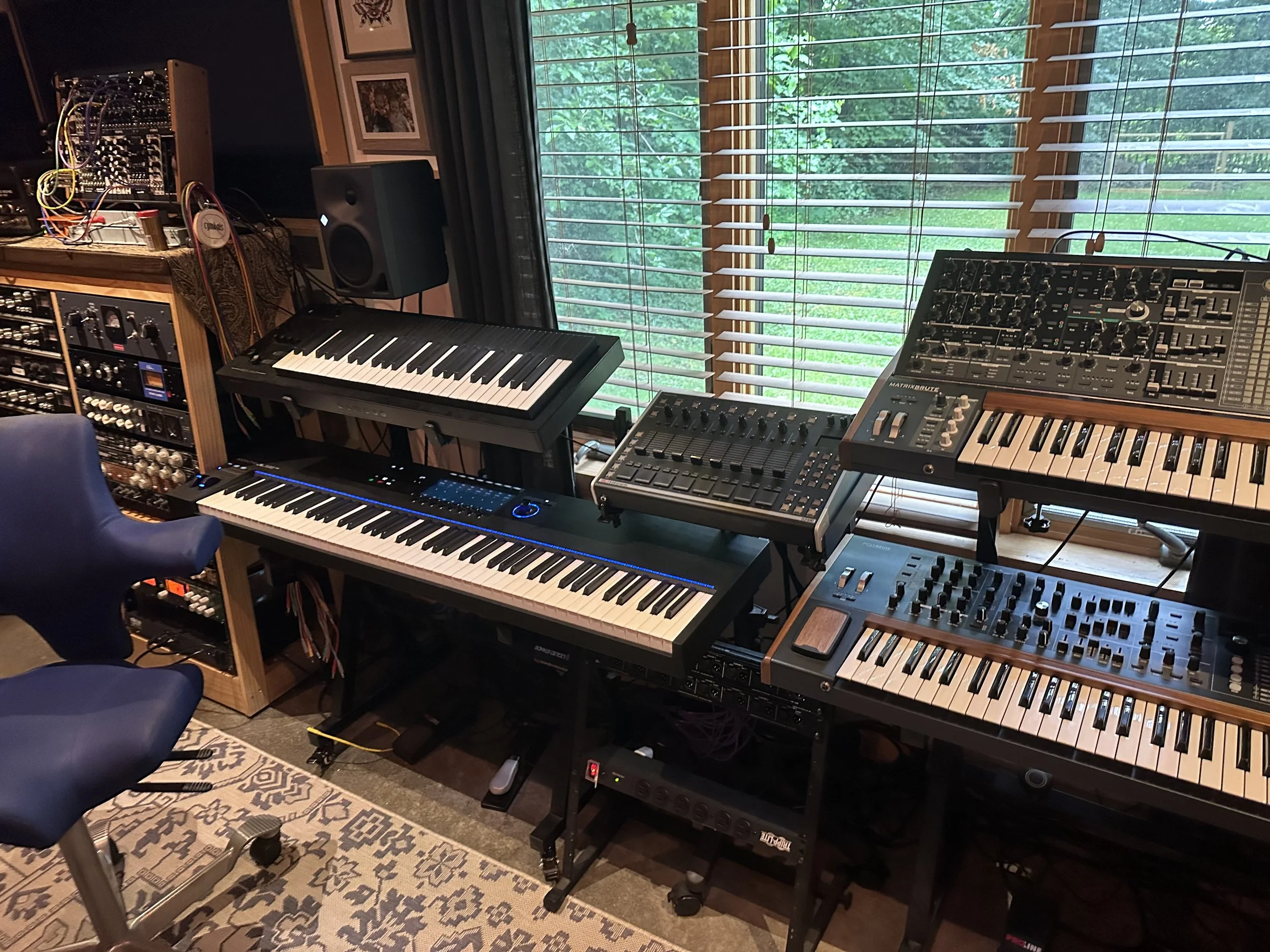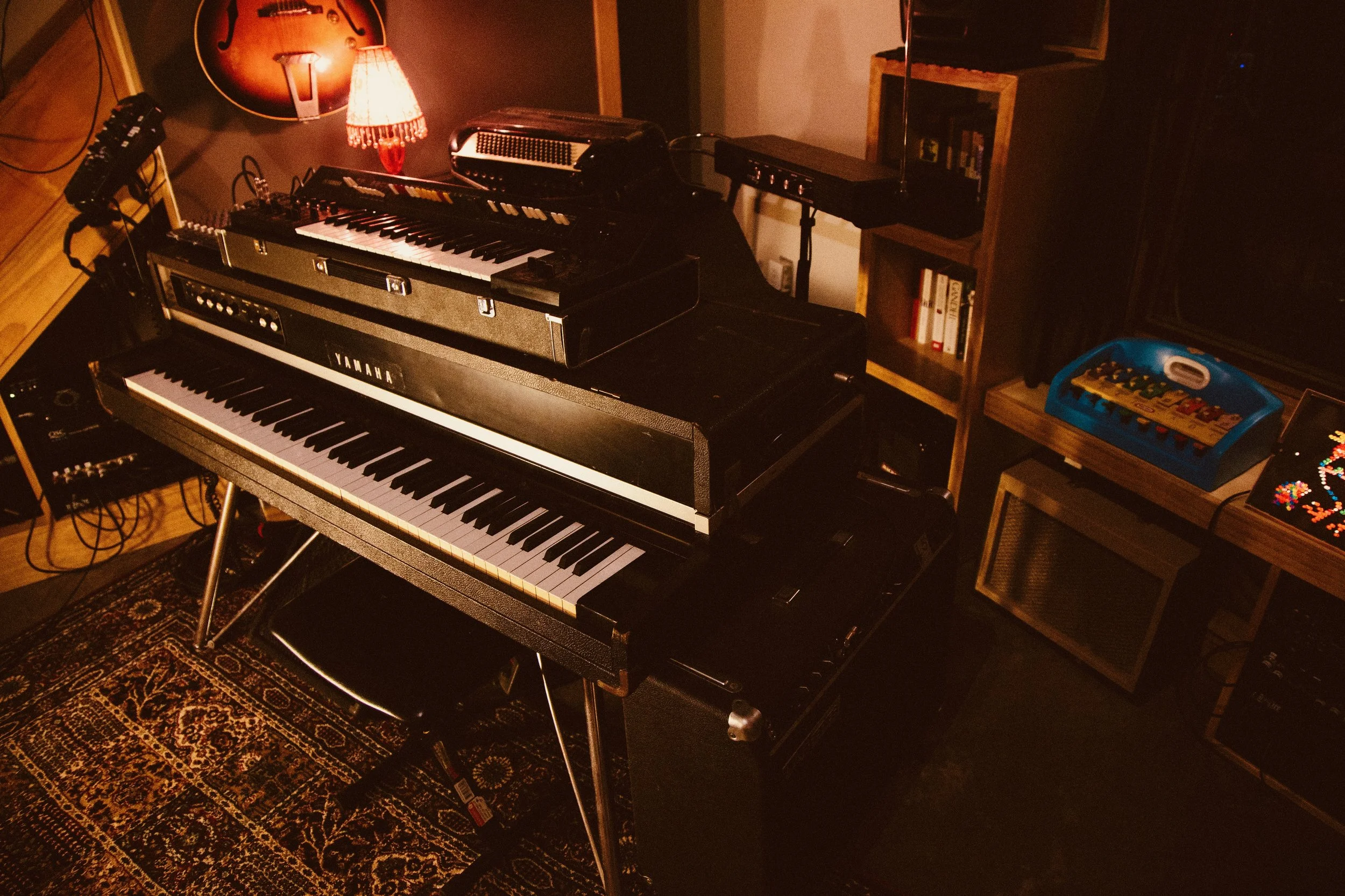Fender Rhodes • Hammond M3 • Yamaha CP80 • Hamilton upright piano • Arturia analog synths